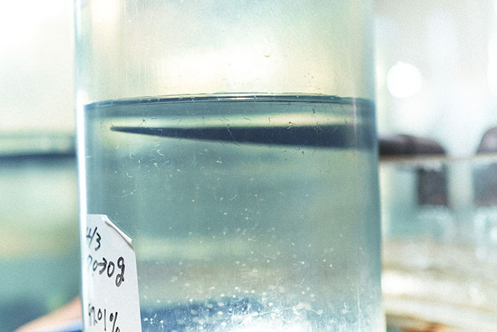 The eye-up rate marked on the incubation cylinders is calculated by Mr Yuki himself, who counts 1,000 eggs with the naked eye and determines whether the eggs are alive or dead. He used to count up to 50,000 eggs and then calculate the percentage, but he found that counting 1,000 gave a more credible figure.