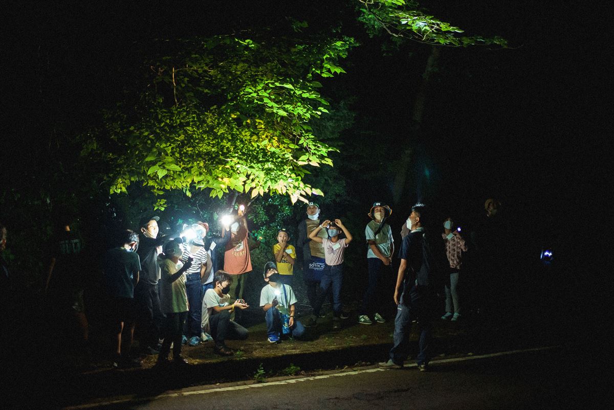 After dinner, we went to the night forest. At first, it seemed too dark to see anything, but the eyes gradually adapted when the lights were off, and the night forest showed itself. “It is harder to distinguish the colors in the dark, but the silhouette of the leaves backlit by moonlight stand out clearer than in the bright daylight,” said Sota Tsukushi of Hakone Visitor Center as he pointed out the insect bite marks on the leaves. Then he told us a tale.
