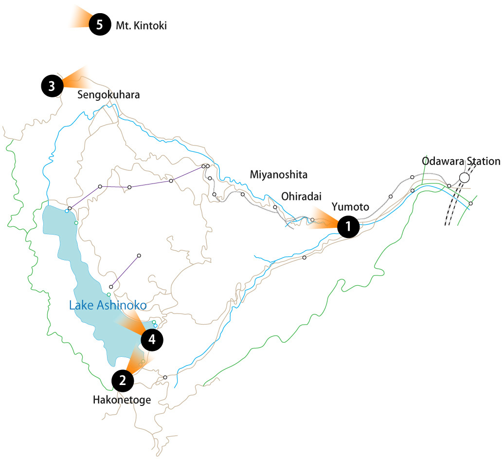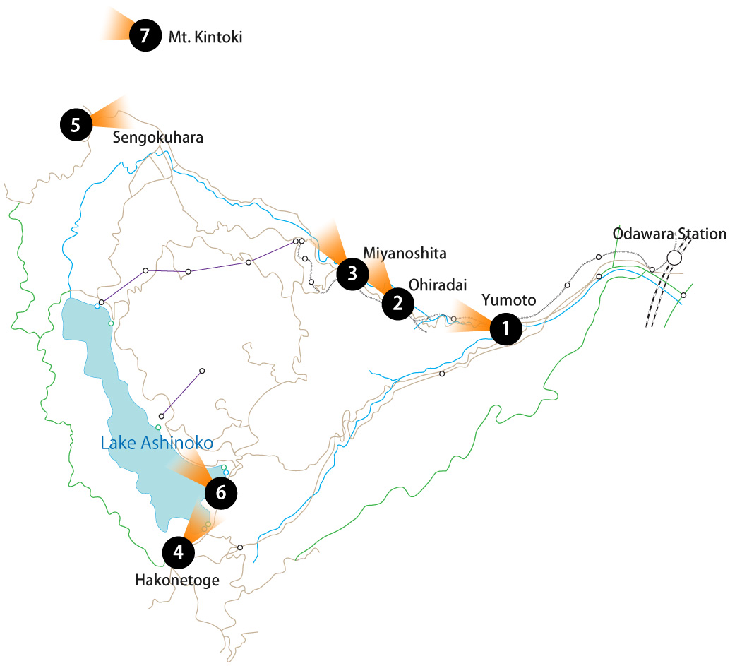Web cameras have been installed at six key points in the Hakone area. See live views of Yumoto, Ohiradai, Miyanoshita, Hakonetoge Pass, Sengokuhara and Lake Ashinoko. You can watch the feeds of these areas to view seasonal changes, traffic conditions, or weather updates.